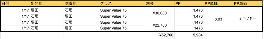 • 国内線はPP単価10以下のフライトをSuper Value 75で予約しよう