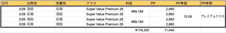 ANA公式サイトのPPシミュレーションツールなどを活用し、正確なPP数を把握することが重要です。PP単価 = (航空券代/獲得PP) で計算し、この値が10円以下であれば効率が良いとされます。