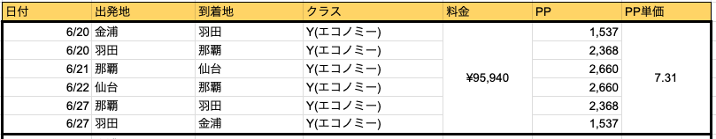 羽田ー那覇はSFC修行の王道路線で多くの方が利用されています。しかし地方都市在住の方も経由便を利用し少し高いPP単価で修行することもできます。(例新千歳ー羽田ー那覇でPP単価17円)