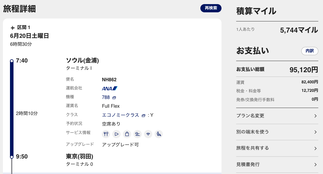 ソウル発券のYクラスはすでに搭乗ポイントがあるから、変更はないね!