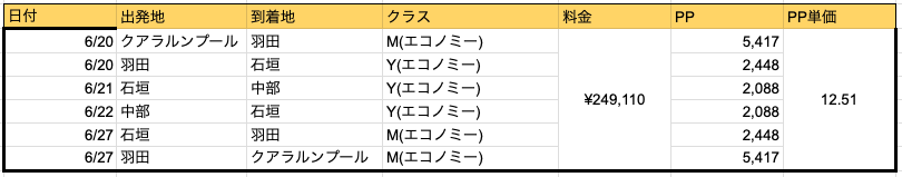 • 国内線をベースに修行を行い、長期休暇でソウル/クアラルンプール発券(海外発券)でPP単価を下げよう