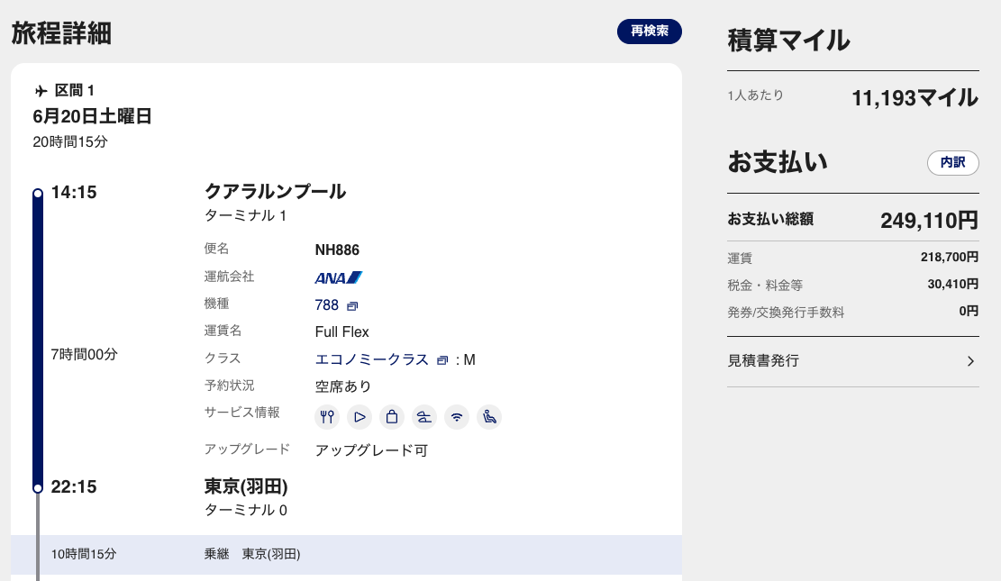 クアラルンプール発券が修行僧に選ばれる最大の理由は、一撃で大量PPを獲得できる(長距離路線との組み合わせ)ことです。ソウル発券と同様に、国際線運賃に日本国内の乗り継ぎ区間(最大2区間往復で計4レグ)を無料で組み込めるのが基本です。
