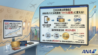 未分類 【SFC修行】PP3万+サービス7種ルートを狙うなら、ANAモバイルは外せない理由 2026年SFC修行の新常識!PP3万+7サービスルート攻略にANAモバイルが必須な理由を徹底解説。一度の契約で「1サービス達成」が永続ループする自動装置の正体とは?支払った通信費の約32%を将来の航空券代へ投資し、賢く・安く・最短距離で解脱するための秘策を公開します。 2026.03.30 未分類