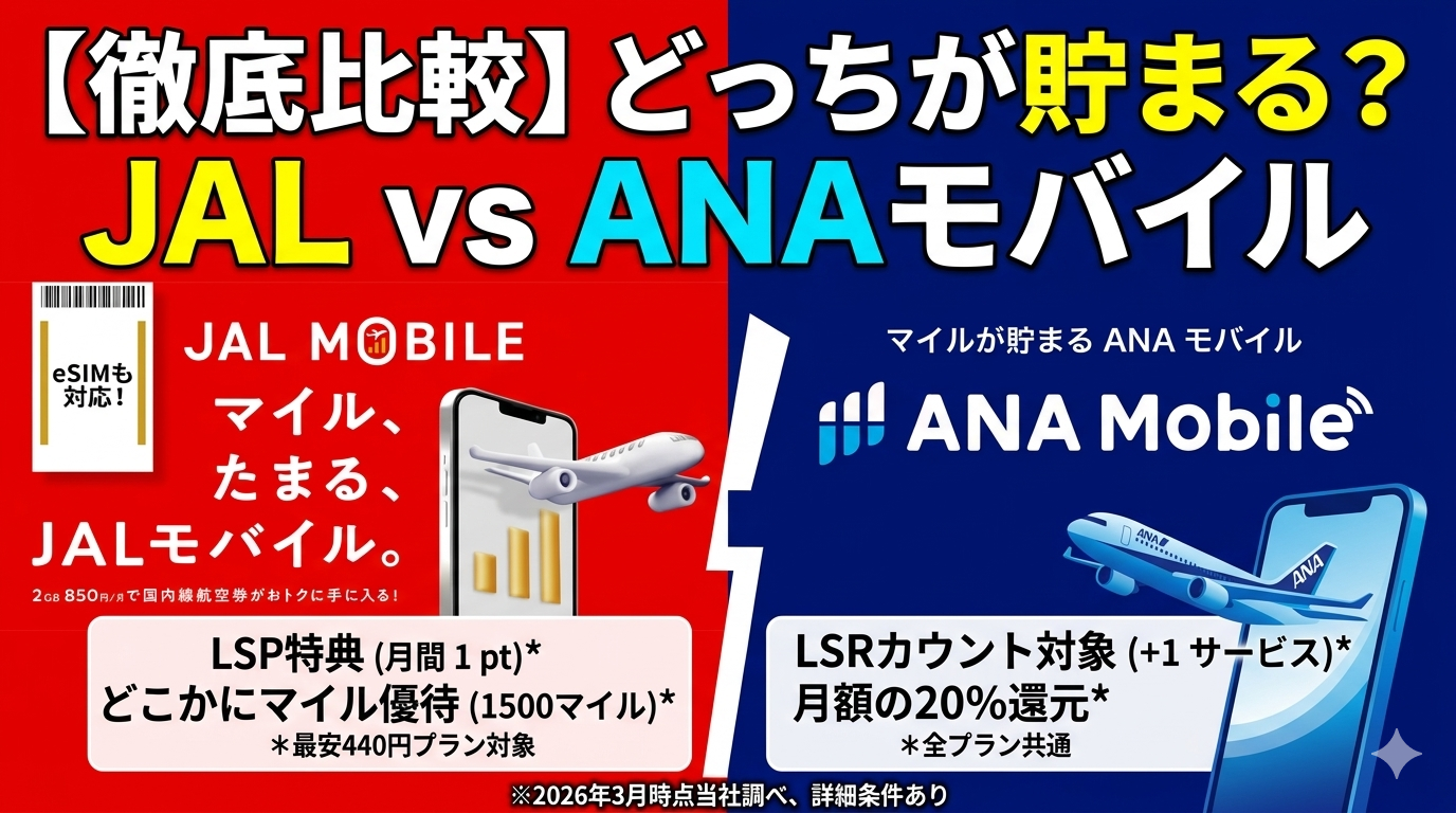 | 項目 | ANAモバイル(メイン回線) | JALモバイル(サブ回線) |