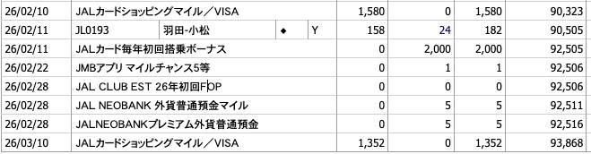 JALカード実績(2月利用分)