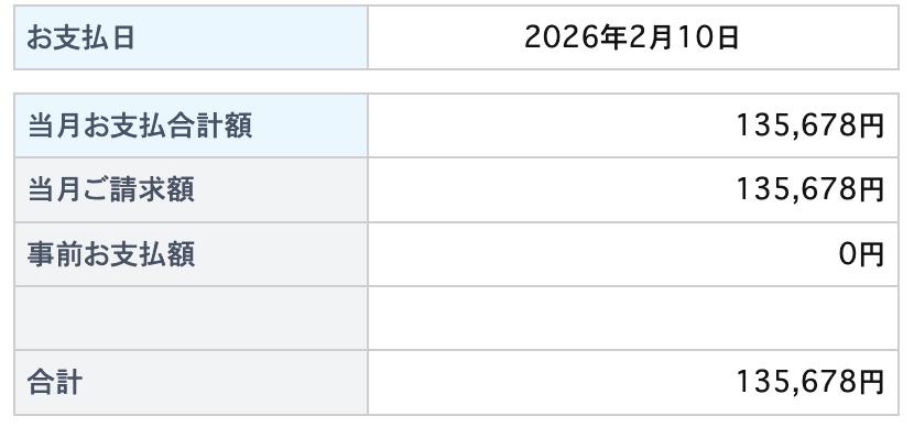 私はJALカードEST普通カードを利用していて、平均月17万円程度本カードで決済しています。2月支払い分は135,678円で、フリーランスになったため節約中です。