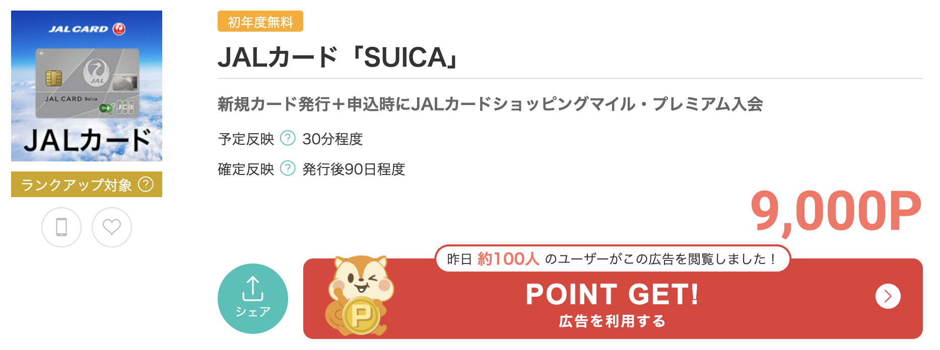 - マイル: JALやANAのマイルへの交換レートが優遇されるキャンペーンが定期的に開催されており、旅行好き(陸マイラー)に根強い人気があります。クレジットカード発行: 数千円〜1万円分以上のポイントがつく案件が常時あります。